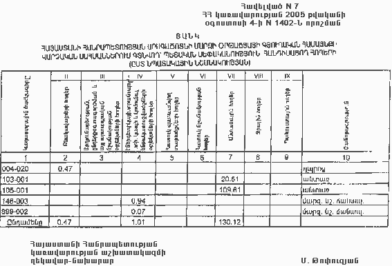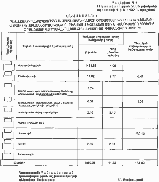 4 օգոստոսի 2005 թվականի N 1402-Ն