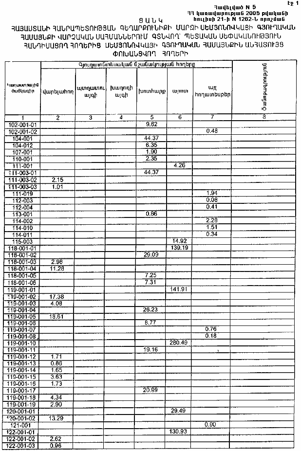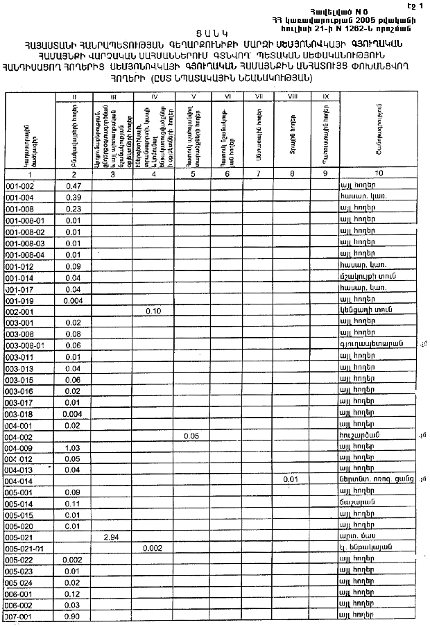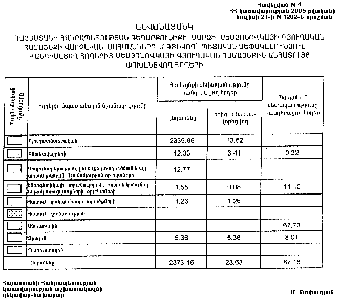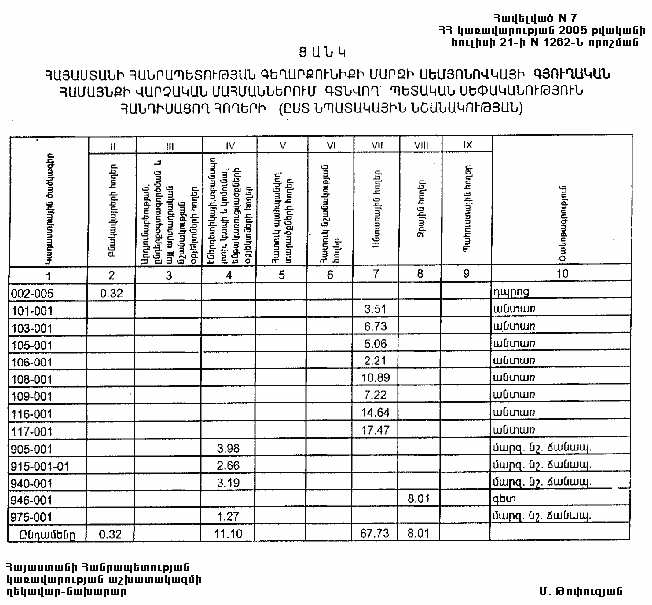 21 հուլիսի 2005 թվականի N 1262-Ն