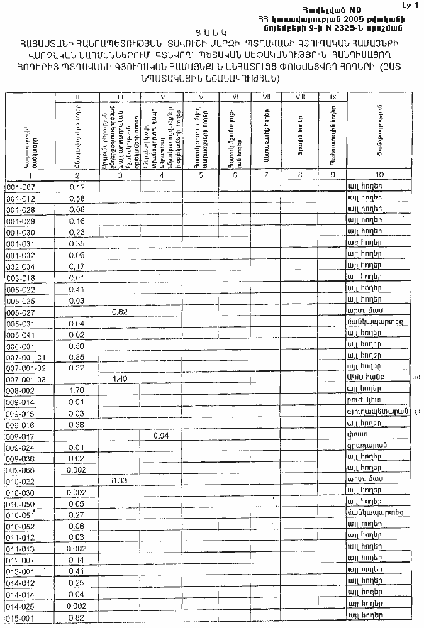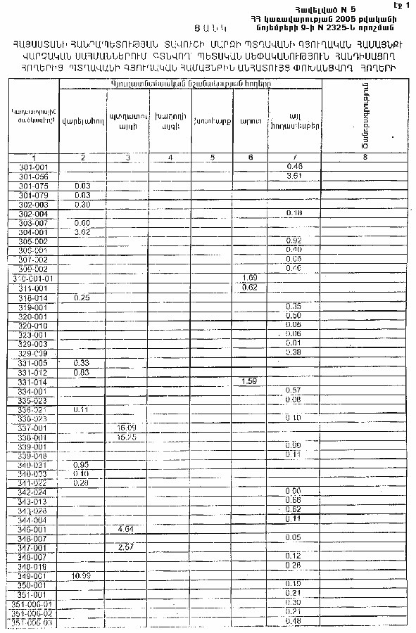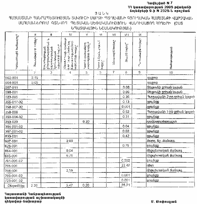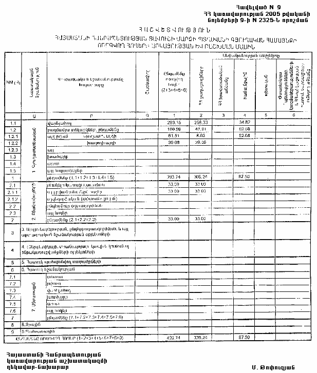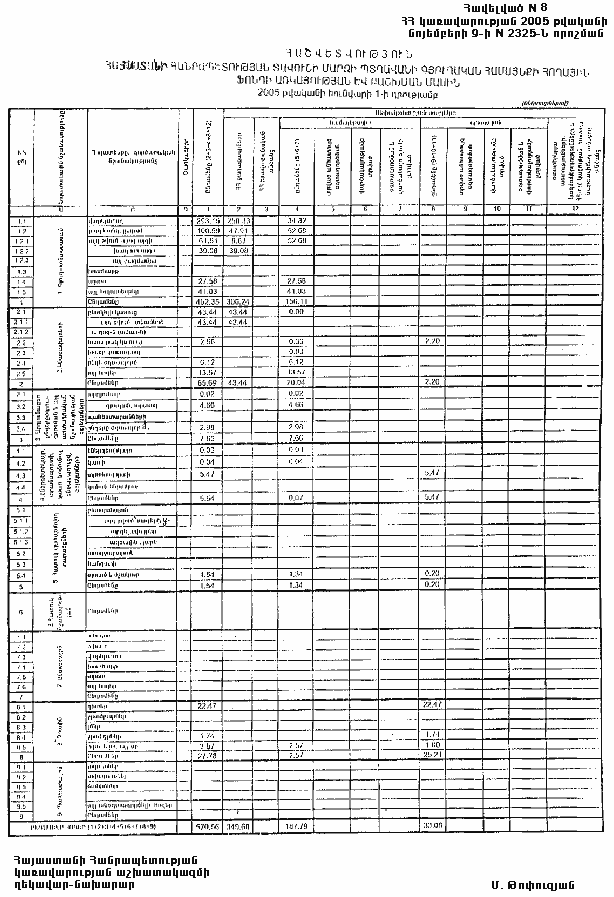 9 նոյեմբերի 2005 թվականի N 2325-Ն