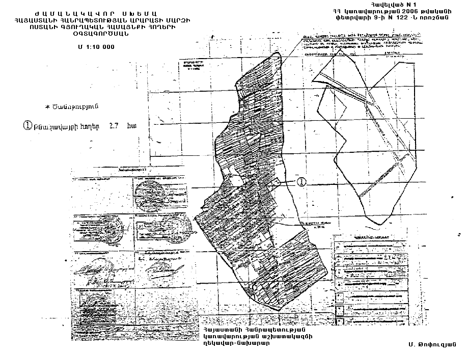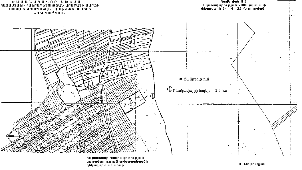 Հայաստանի Հանրապետության կառավարության 2002 թվականի մայիսի 22-ի N 597 որոշմամբ հաստատված` Հայաստանի Հանրապետության Արարատի մարզի Ոստանի գյուղական համայնքի հողերի օգտագործման ժամանակավոր սխեմայում՝ համաձայն NN 1 և 2 հավելվածների, համայնքային սեփականություն հանդիսացող գյուղատնտեսական նշանակության 2.7 հեկտար վարելահողը փոխադրել բնակավայրերի հողերի կատեգորիա՝ բնակելի կառուցապատման նպատակով օտարելու համար: