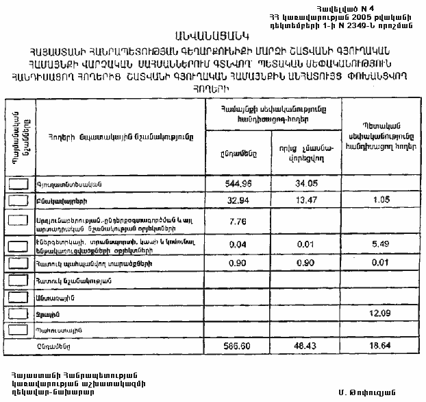 ա) Հայաստանի Հանրապետության Գեղարքունիքի մարզի Շատվանի գյուղական համայնքին անհատույց սեփականության իրավունքով փոխանցվող 586.6 հեկտար հողերից 48.43 հեկտարը մասնավորեցման ենթակա չէ.