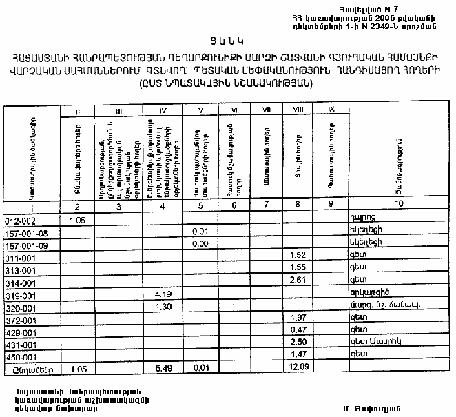 1 դեկտեմբերի 2005 թվականի N 2349-Ն