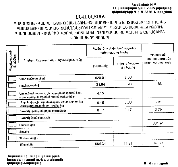 9 դեկտեմբերի 2005 թվականի N 2356-Ն