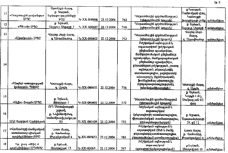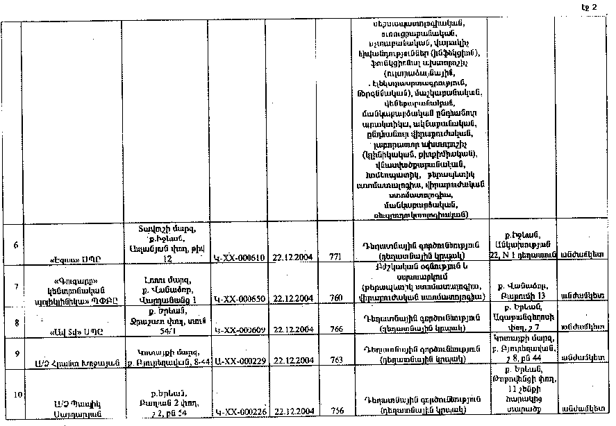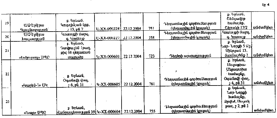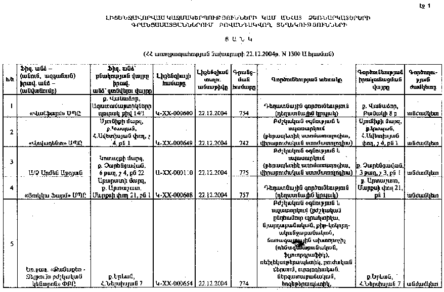 ԼԻՑԵՆԶԱՎՈՐՎԱԾ ԿԱԶՄԱԿԵՐՊՈՒԹՅՈՒՆՆԵՐԻ ԿԱՄ ԱՆՀԱՏ ՁԵՌՆԱՐԿԱՏԵՐԵՐԻ ԳՐԱՆՑԱՄԱՏՅԱՆՆԵՐՈՒՄ ԲՈՎԱՆԴԱԿՎՈՂ ՏԵՂԵԿՈՒԹՅՈՒՆՆԵՐԻ ՑԱՆԿ