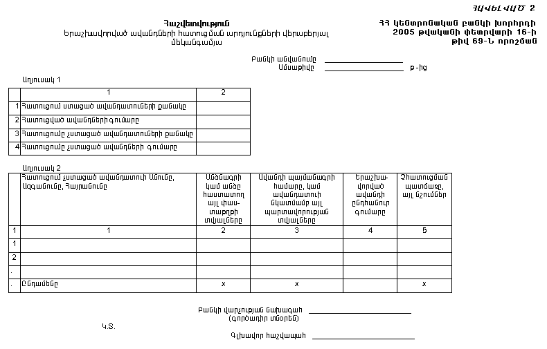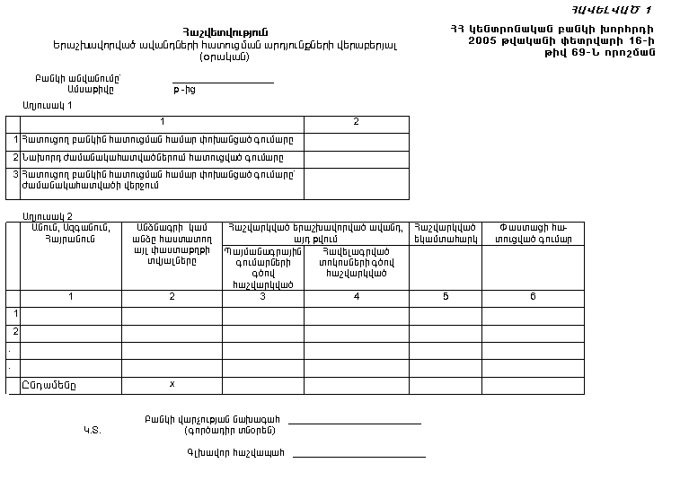 «ՀԱՏՈՒՑՈՂ ԲԱՆԿԻ ԿՈՂՄԻՑ ՀԱՅԱՍՏԱՆԻ ՀԱՆՐԱՊԵՏՈՒԹՅԱՆ ԿԵՆՏՐՈՆԱԿԱՆ ԲԱՆԿԻՆ ԵՎ ՀԻՄՆԱԴՐԱՄԻՆ ՆԵՐԿԱՅԱՑՎՈՂ ՀԱՇՎԵՏՎՈՒԹՅՈՒՆՆԵՐԻ ԼՐԱՑՄԱՆ ԵՎ ՆԵՐԿԱՅԱՑՄԱՆ ԿԱՐԳԸ» ՀԱՍՏԱՏԵԼՈՒ ՄԱՍԻՆ