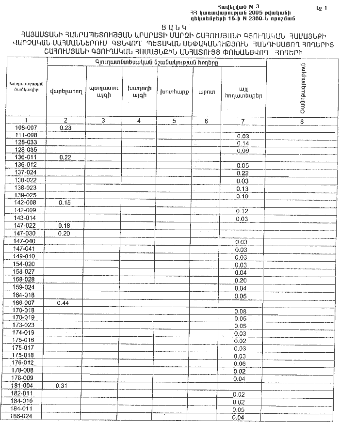 3. Ընդունել ի գիտություն Հայաստանի Հանրապետության Արարատի մարզի Շահումյանի գյուղական համայնքի հողային ֆոնդի առկայության և բաշխման մասին հաշվետվությունը` 2005 թվականի հունվարի 1-ի դրությամբ` համաձայն NN 6 և 7 հավելվածների: