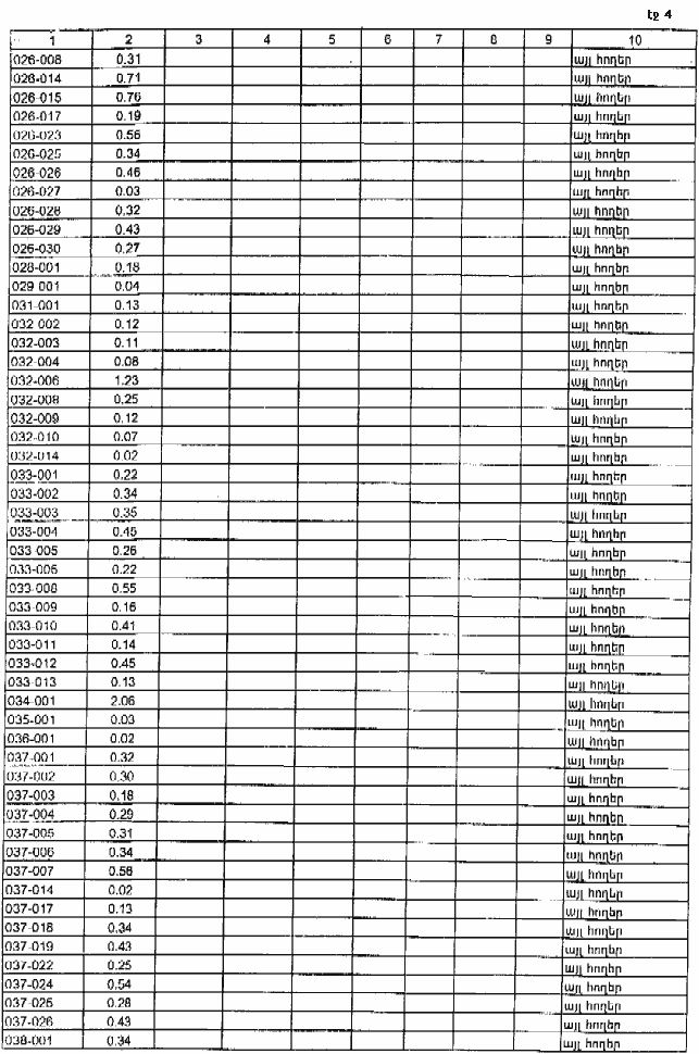 4. Ընդունել ի գիտություն Հայաստանի Հանրապետության Գեղարքունիքի մարզի Այրքի գյուղական համայնքի հողային ֆոնդի առկայության և բաշխման մասին հաշվետվությունը` 2005 թվականի հունվարի 1-ի դրությամբ` համաձայն NN 8 և 9 հավելվածների: