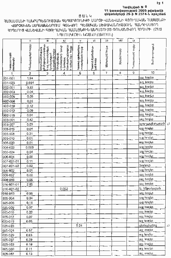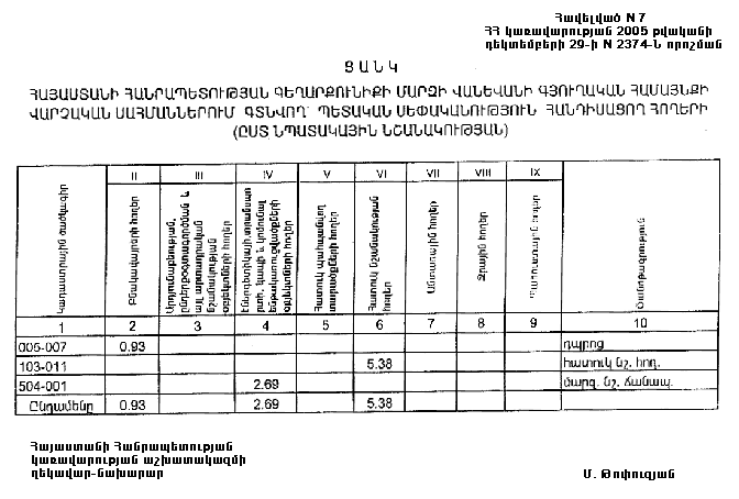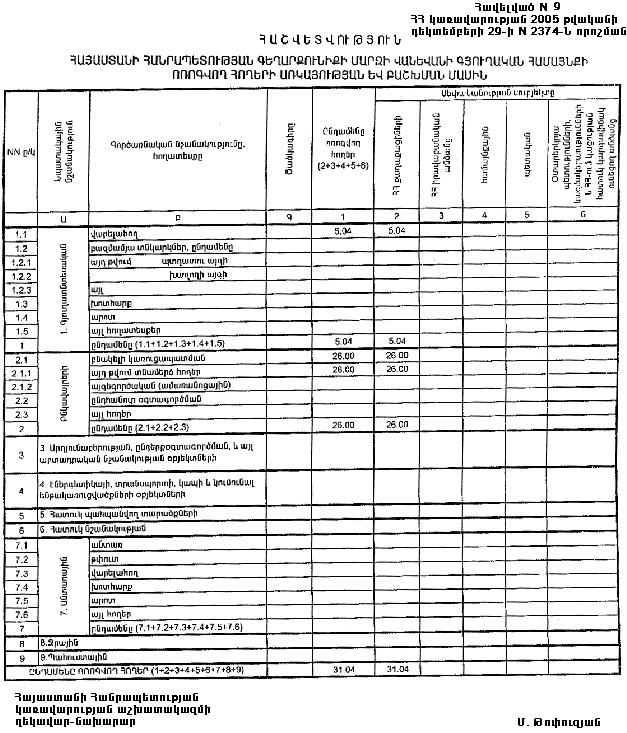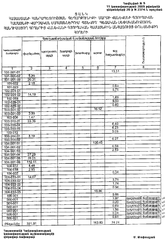 29 դեկտեմբերի 2005 թվականի N 2374-Ն