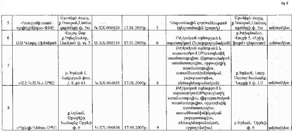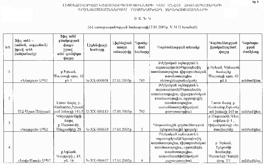 ԼԻՑԵՆԶԱՎՈՐՎԱԾ ԿԱԶՄԱԿԵՐՊՈՒԹՅՈՒՆՆԵՐԻ ԿԱՄ ԱՆՀԱՏ ՁԵՌՆԱՐԿԱՏԵՐԵՐԻ ԳՐԱՆՑԱՄԱՏՅԱՆՆԵՐՈՒՄ ԲՈՎԱՆԴԱԿՎՈՂ ՏԵՂԵԿՈՒԹՅՈՒՆՆԵՐԻ ՑԱՆԿ
