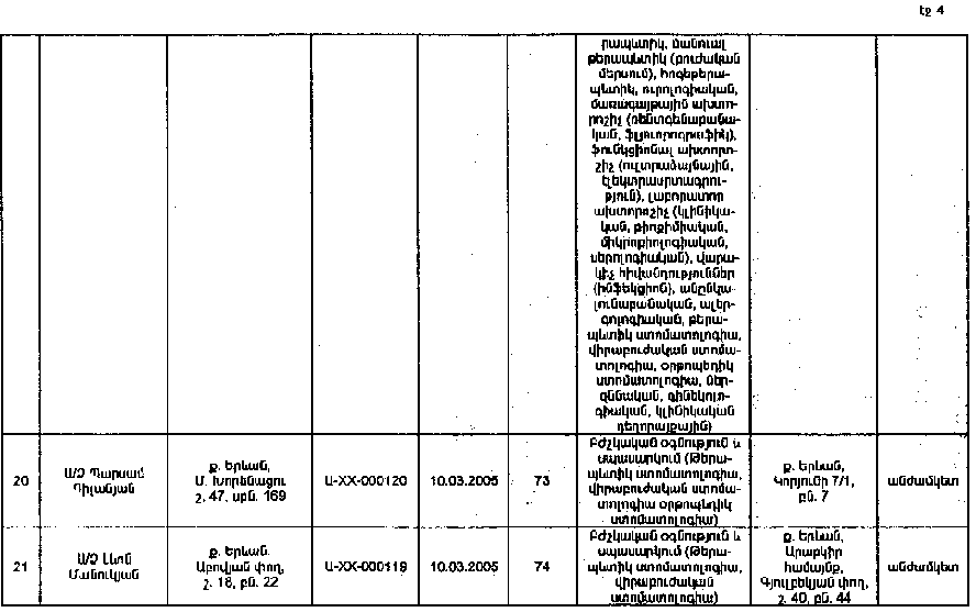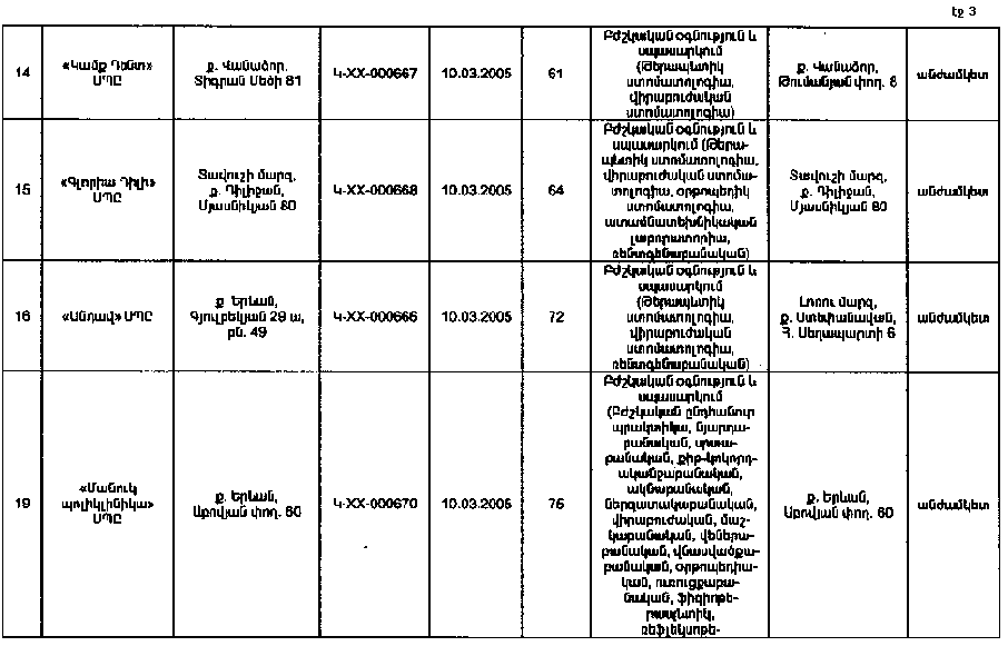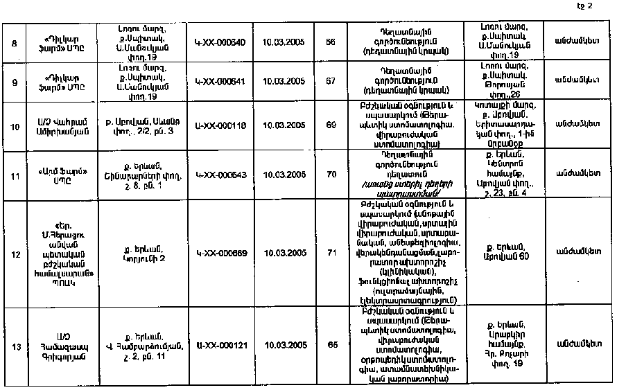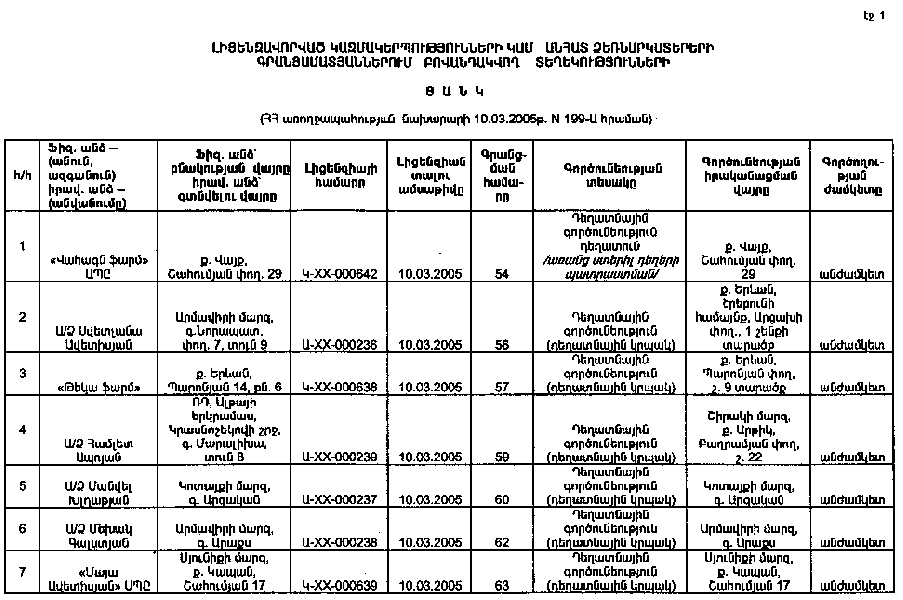 ԼԻՑԵՆԶԱՎՈՐՎԱԾ ԿԱԶՄԱԿԵՐՊՈՒԹՅՈՒՆՆԵՐԻ ԿԱՄ ԱՆՀԱՏ ՁԵՌՆԱՐԿԱՏԵՐԵՐԻ ԳՐԱՆՑԱՄԱՏՅԱՆՆԵՐՈՒՄ ԲՈՎԱՆԴԱԿՎՈՂ ՏԵՂԵԿՈՒԹՅՈՒՆՆԵՐԻ ՑԱՆԿ