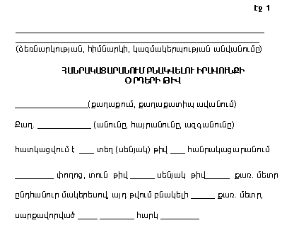 6. Բնակելի մակերես հատկացնելու մասին որոշման հիման վրա ադմինիստրացիան տալիս է հանրակացարանում բնակություն հաստատելու իրավունքի օրդեր, թիվ 1 հավելվածի համաձայն սահմանված ձևով: