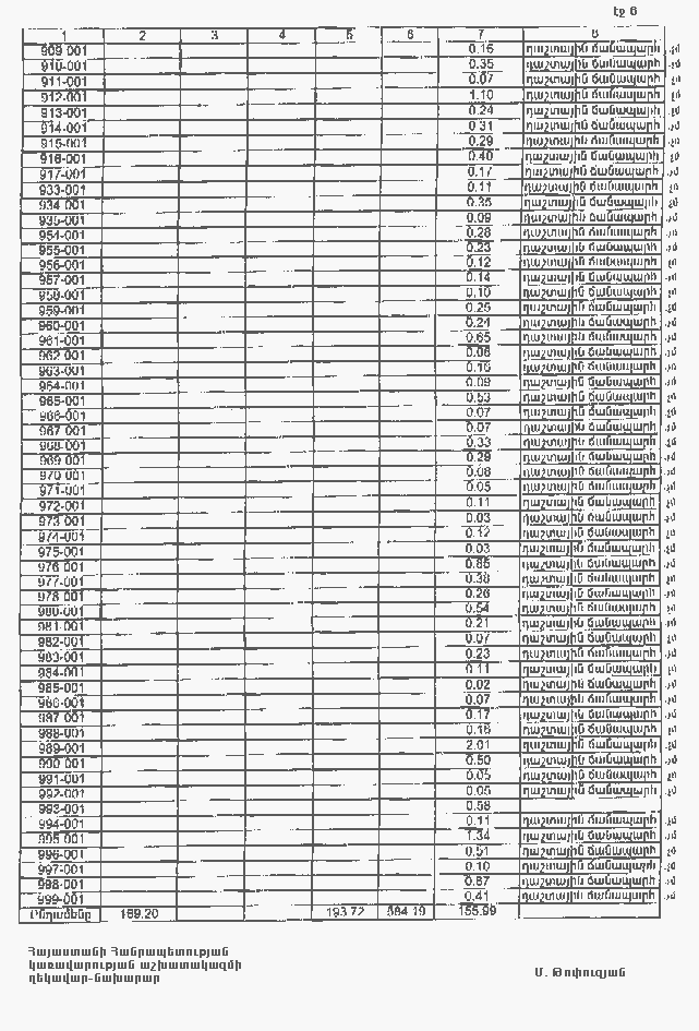 6. Թույլատրել Հայաստանի Հանրապետության կառավարությանն առընթեր անշարժ գույքի կադաստրի պետական կոմիտեի նախագահին Հայաստանի Հանրապետության պետական գեոդեզիական ցանցի հավասարակշռման արդյունքների հիման վրա Հայաստանի Հանրապետության վարչատարածքային միավորների սահմանանիշերի կոորդինատների ժողովածուի հրատարակումից հետո հողային ֆոնդի ընթացիկ հաշվառման ժամանակ Հայաստանի Հանրապետության Գեղարքունիքի մարզի Վահանի գյուղական համայնքի հողային հաշվեկշռում սահմանված կարգով կատարել համապատասխան փոփոխություններ: