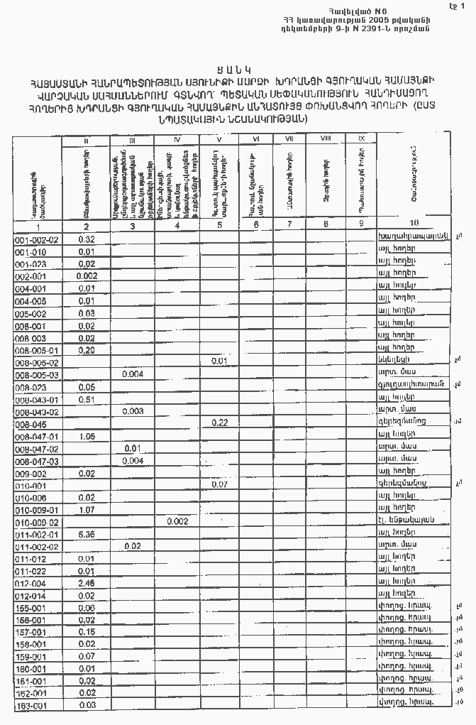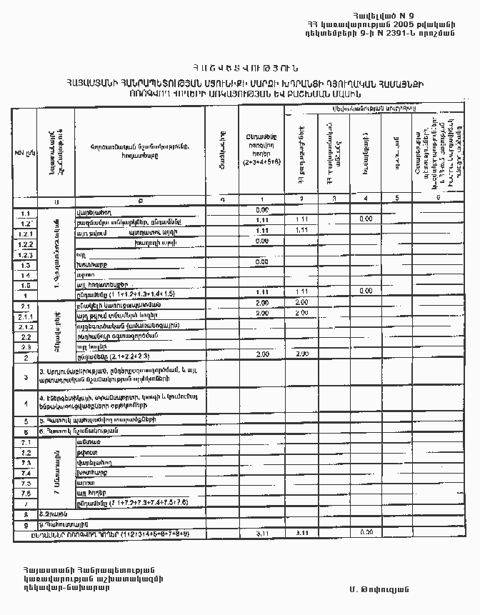 9 դեկտեմբերի 2005 թվականի N 2391-Ն