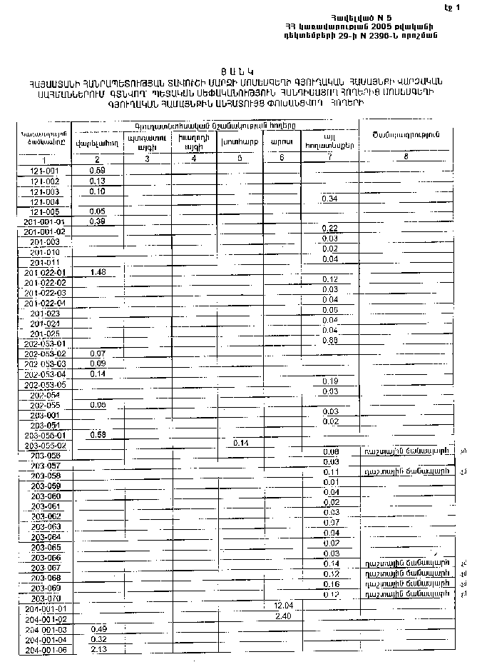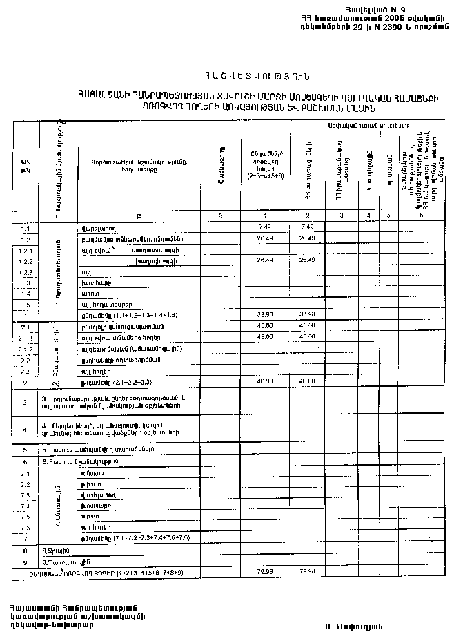 29 դեկտեմբերի 2005 թվականի N 2396-Ն