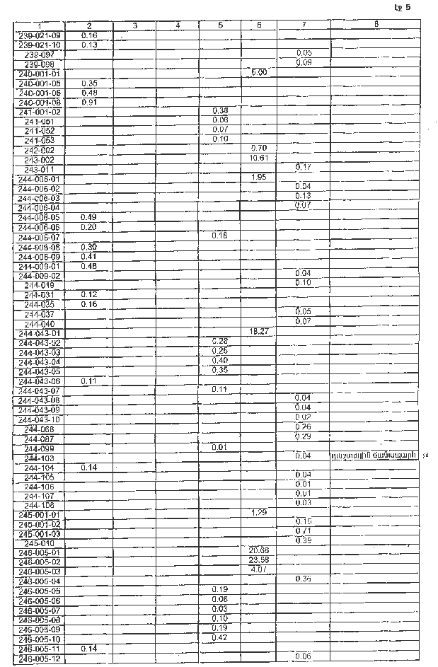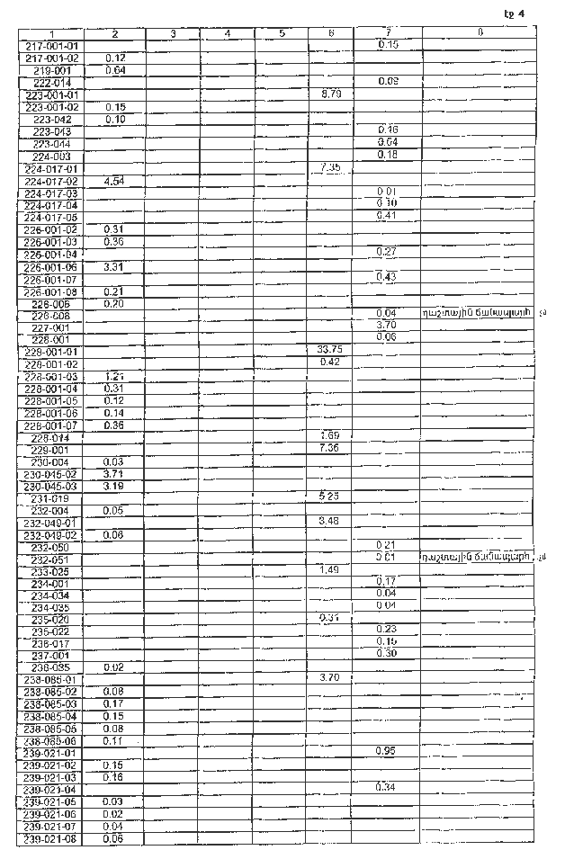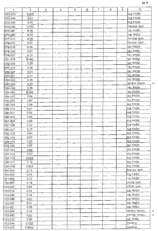 4. Ընդունել ի գիտություն Հայաստանի Հանրապետության Տավուշի մարզի Մոսեսգեղի գյուղական համայնքի հողային ֆոնդի առկայության և բաշխման մասին հաշվետվությունը՝ 2005 թվականի հունվարի 1-ի դրությամբ՝ համաձայն NN 8 և 9 հավելվածների: