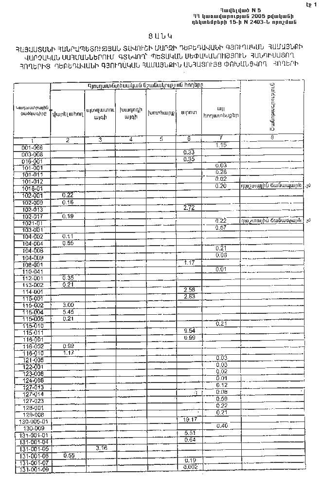 15 դեկտեմբերի 2005 թվականի N 2403-Ն