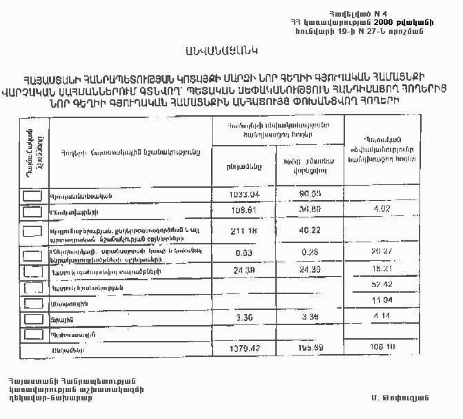 4. Ընդունել ի գիտություն Հայաստանի Հանրապետության Կոտայքի մարզի Նոր Գեղիի գյուղական համայնքի հողային ֆոնդի առկայության և բաշխման մասին հաշվետվությունը` 2005 թվականի հունվարի 1-ի դրությամբ` համաձայն NN 8 և 9 հավելվածների: