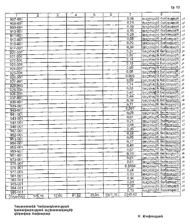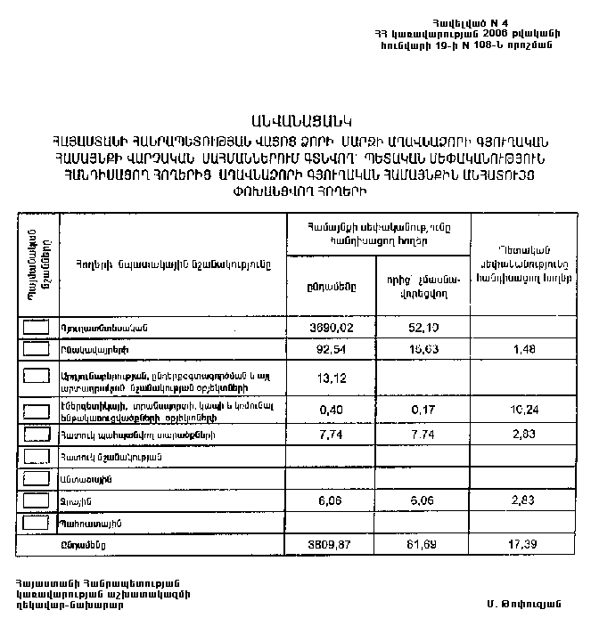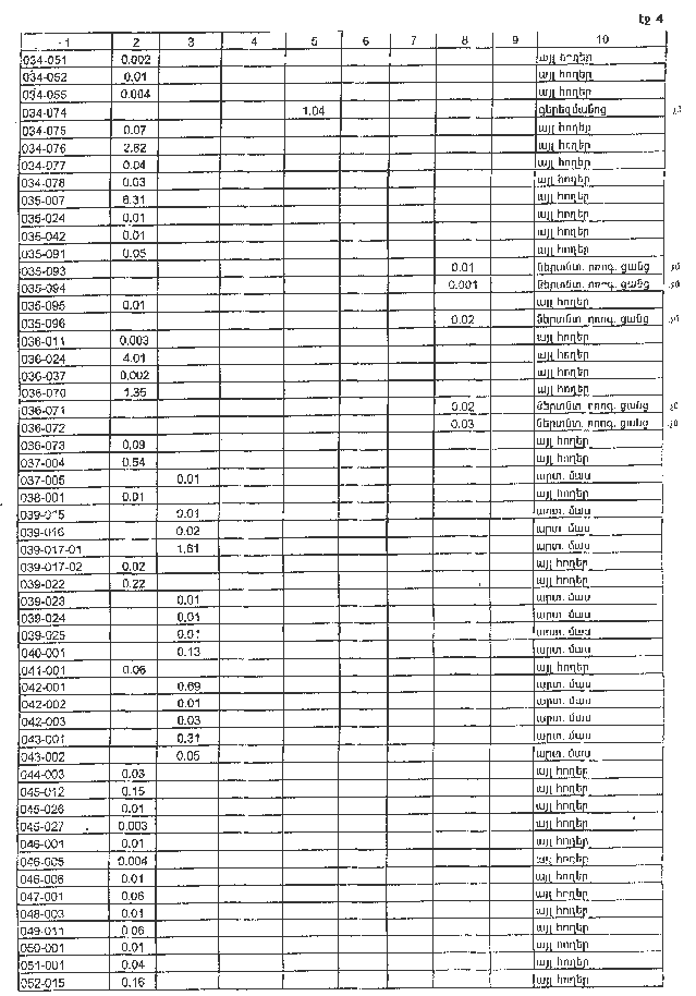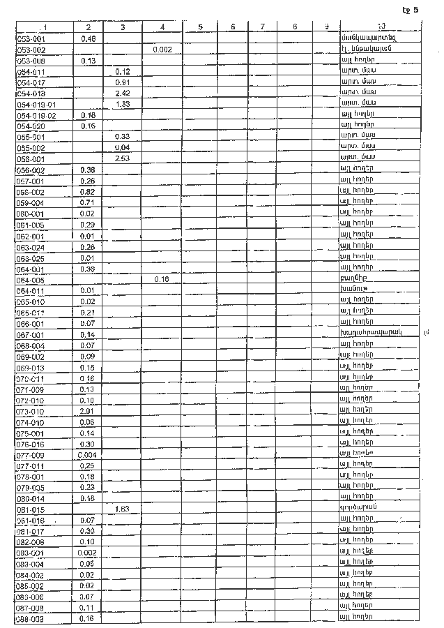 4. Ընդունել ի գիտություն Հայաստանի Հանրապետության Վայոց ձորի մարզի Աղավնաձորի գյուղական համայնքի հողային ֆոնդի առկայության և բաշխման մասին հաշվետվությունը` 2005 թվականի հունվարի 1-ի դրությամբ` համաձայն NN 8 և 9 հավելվածների: