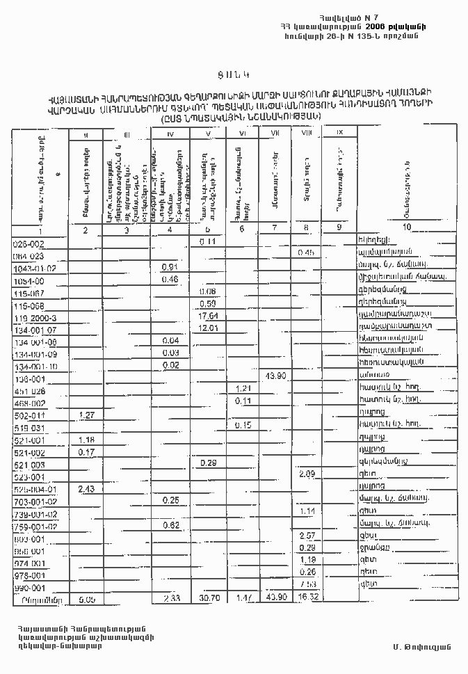 7. Հայաստանի Հանրապետության Գեղարքունիքի մարզպետին` Հայաստանի Հանրապետության կառավարության 2000 թվականի հոկտեմբերի 23-ի N 656 որոշմամբ սահմանված կարգով` սկզբնական հաշվառման տվյալների հիման վրա ապահովել մարզի տարածքում ընթացիկ հաշվառման աշխատանքների իրականացումը: