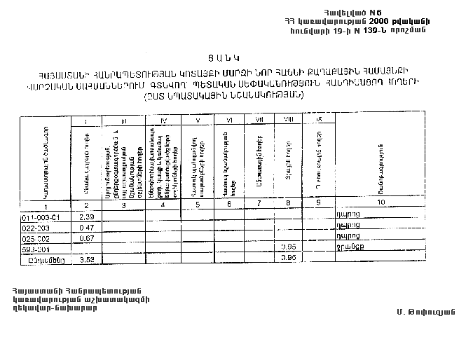 19 հունվարի 2006 թվականի N 139-Ն
