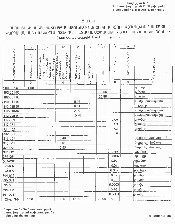 7. Հայաստանի Հանրապետության Սյունիքի մարզպետին` Հայաստանի Հանրապետության կառավարության 2000 թվականի հոկտեմբերի 23-ի N 656 որոշմամբ սահմանված կարգով` սկզբնական հաշվառման տվյալների հիման վրա ապահովել մարզի տարածքում ընթացիկ հաշվառման աշխատանքների իրականացումը: