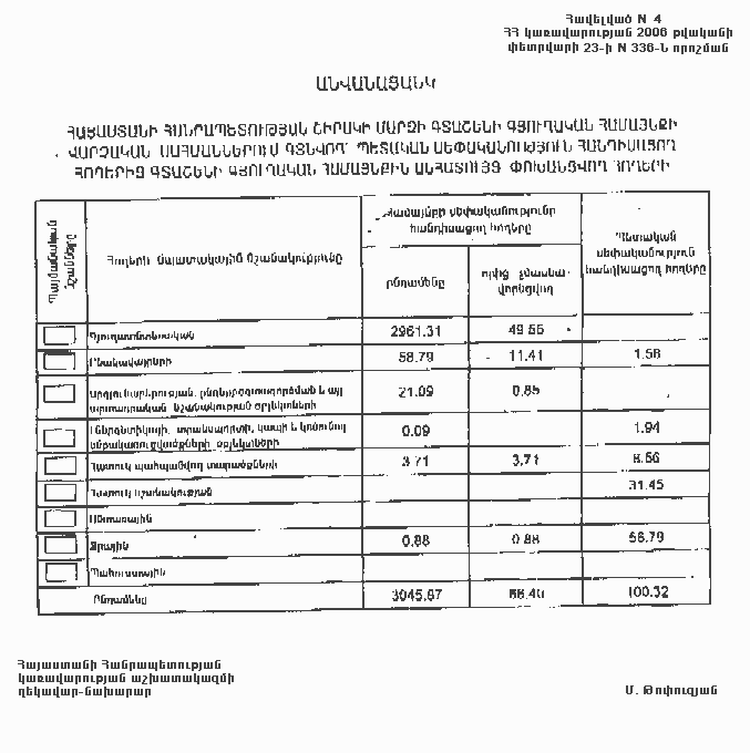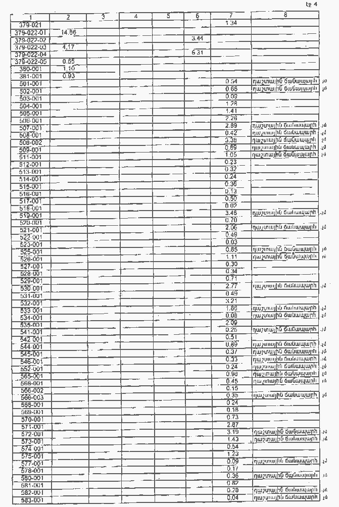 4. Ընդունել ի գիտություն Հայաստանի Հանրապետության Շիրակի մարզի Գտաշենի գյուղական համայնքի հողային ֆոնդի առկայության և բաշխման մասին հաշվետվությունը` 2005 թվականի հունվարի 1-ի դրությամբ` համաձայն NN 8 և 9 հավելվածների: