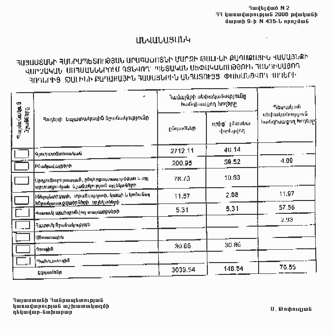 3. Ընդունել ի գիտություն Հայաստանի Հանրապետության Արագածոտնի մարզի Թալինի քաղաքային համայնքի հողային ֆոնդի առկայության և բաշխման մասին հաշվետվությունը՝ 2005 թվականի հունվարի 1-ի դրությամբ՝ համաձայն NN 6 և 7 հավելվածների: