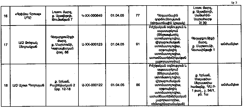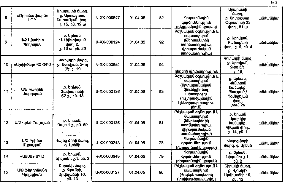 ԼԻՑԵՆԶԱՎՈՐՎԱԾ ԿԱԶՄԱԿԵՐՊՈՒԹՅՈՒՆՆԵՐԻ ԿԱՄ ԱՆՀԱՏ ՁԵՌՆԱՐԿԱՏԵՐԵՐԻ ԳՐԱՆՑԱՄԱՏՅԱՆՆԵՐՈՒՄ ԲՈՎԱՆԴԱԿՎՈՂ ՏԵՂԵԿՈՒԹՅՈՒՆՆԵՐԻ ՑԱՆԿ