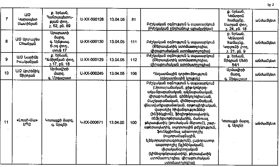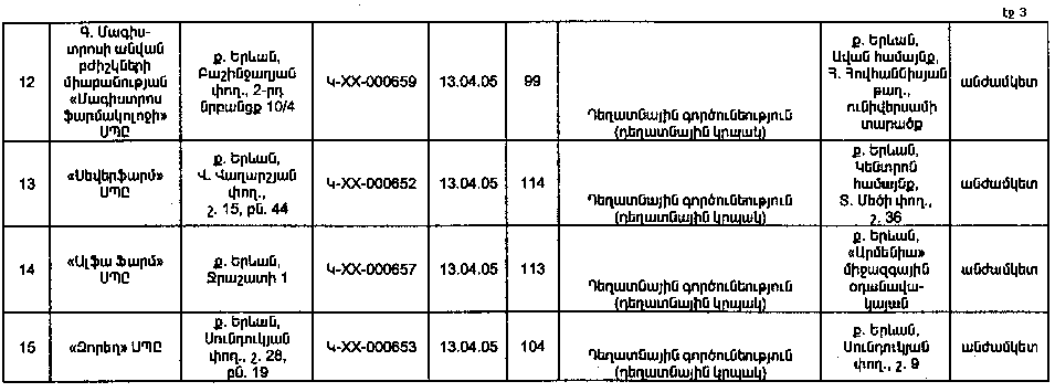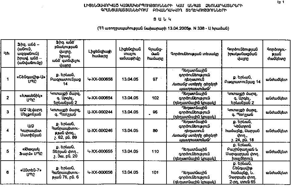 ԼԻՑԵՆԶԱՎՈՐՎԱԾ ԿԱԶՄԱԿԵՐՊՈՒԹՅՈՒՆՆԵՐԻ ԿԱՄ ԱՆՀԱՏ ՁԵՌՆԱՐԿԱՏԵՐԵՐԻ ԳՐԱՆՑԱՄԱՏՅԱՆՆԵՐՈՒՄ ԲՈՎԱՆԴԱԿՎՈՂ ՏԵՂԵԿՈՒԹՅՈՒՆՆԵՐԻ ՑԱՆԿ