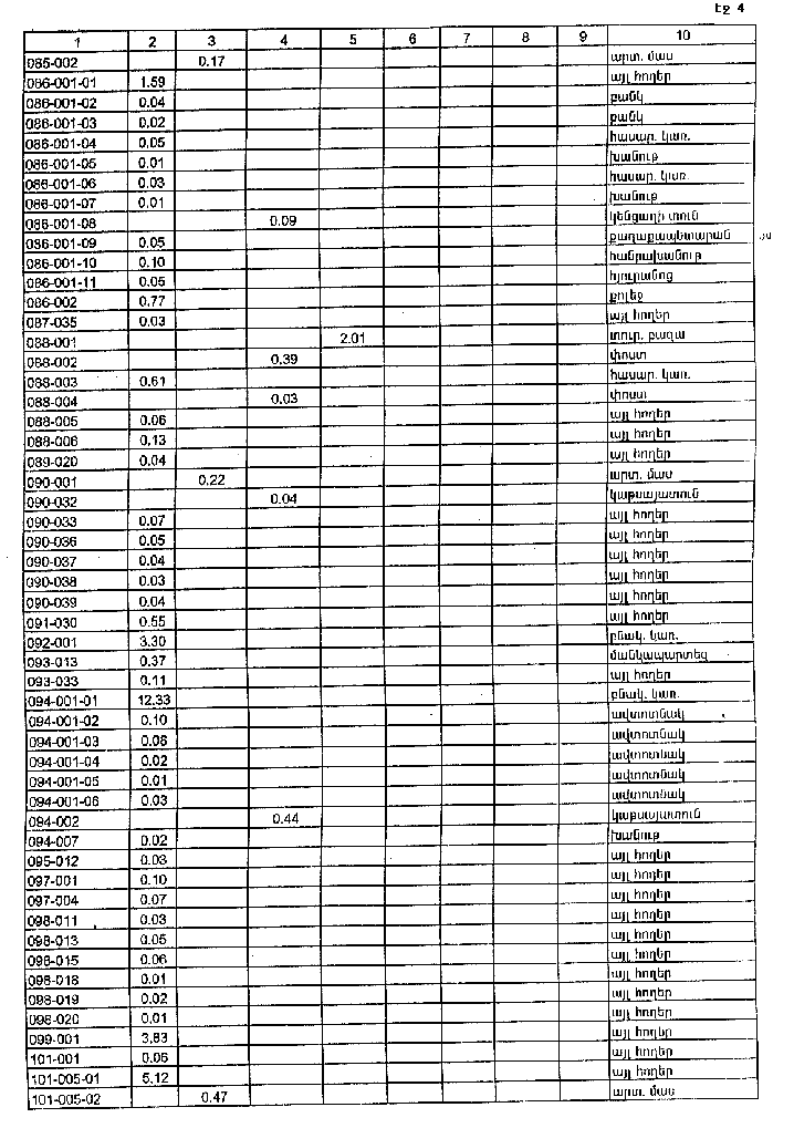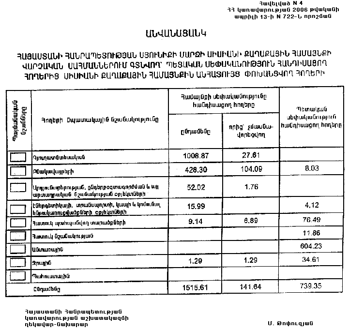4. Ընդունել ի գիտություն Հայաստանի Հանրապետության Սյունիքի մարզի Սիսիանի քաղաքային համայնքի հողային ֆոնդի առկայության և բաշխման մասին հաշվետվությունը` 2005 թվականի հունվարի 1-ի դրությամբ` համաձայն NN 8 և 9 հավելվածների: