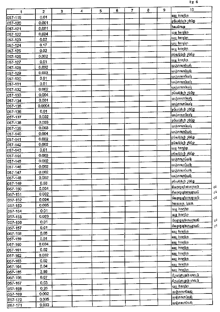 6. Հայաստանի Հանրապետության Արարատի մարզպետին` Հայաստանի Հանրապետության կառավարության 2000 թվականի հոկտեմբերի 23-ի N 656 որոշմամբ սահմանված կարգով` սկզբնական հաշվառման տվյալների հիման վրա ապահովել մարզի տարածքում ընթացիկ հաշվառման աշխատանքների իրականացումը: