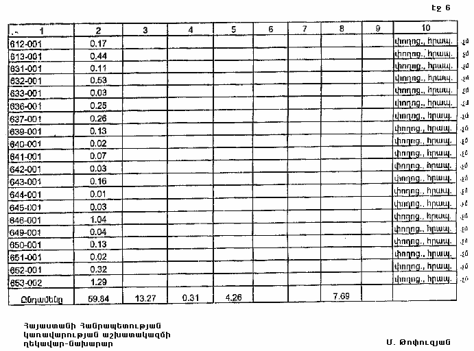 7. Հայաստանի Հանրապետության Արագածոտնի մարզպետին` Հայաստանի Հանրապետության կառավարության 2000 թվականի հոկտեմբերի 23-ի N 656 որոշմամբ սահմանված կարգով` սկզբնական հաշվառման տվյալների հիման վրա ապահովել մարզի տարածքում ընթացիկ հաշվառման աշխատանքների իրականացումը: