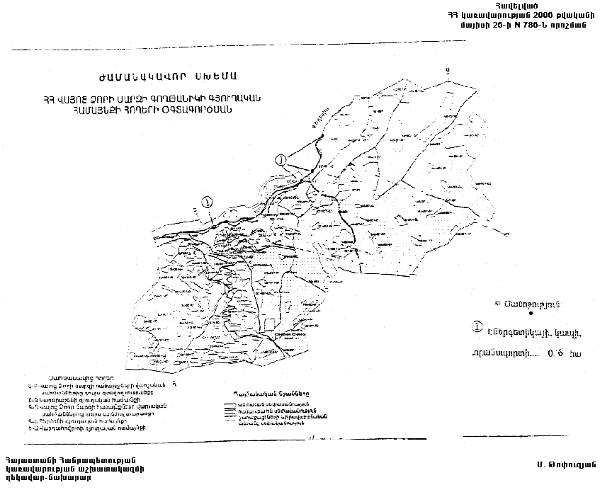 N 766-Ն որոշմամբ հաստատված Հայաստանի Հանրապետության Վայոց ձորի մարզի Գողթանիկի գյուղական համայնքի հողերի օգտագործման ժամանակավոր սխեմայում` համաձայն հավելվածի, համայնքային սեփականություն հանդիսացող 0,6 հեկտար այլ հողերը փոխադրել էներգետիկայի, կապի, տրանսպորտի և կոմունալ ենթակառուցվածքների օբյեկտների հողերի կատեգորիա՝ հիդրոէլեկտրակայանի և օժանդակ կառույցների շինարարության համար: