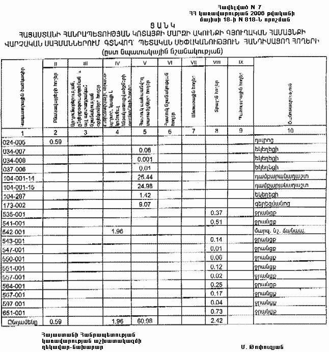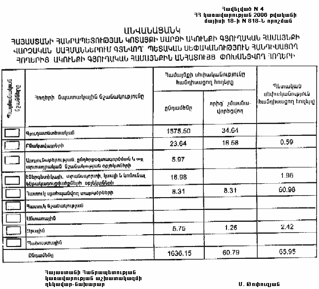 ա) Հայաստանի Հանրապետության Կոտայքի մարզի Ակունքի գյուղական համայնքին անհատույց սեփականության իրավունքով փոխանցվող 1636.15 հեկտար հողերից 60.79 հեկտարը մասնավորեցման ենթակա չէ.