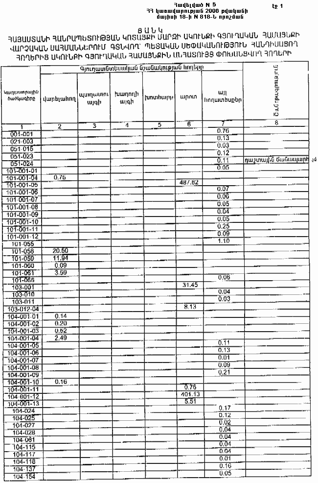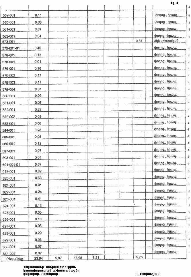 4. Ընդունել ի գիտություն Հայաստանի Հանրապետության Կոտայքի մարզի Ակունքի գյուղական համայնքի հողային ֆոնդի առկայության և բաշխման մասին հաշվետվությունը` 2005 թվականի հունվարի 1-ի դրությամբ` համաձայն NN 8 և 9 հավելվածների: