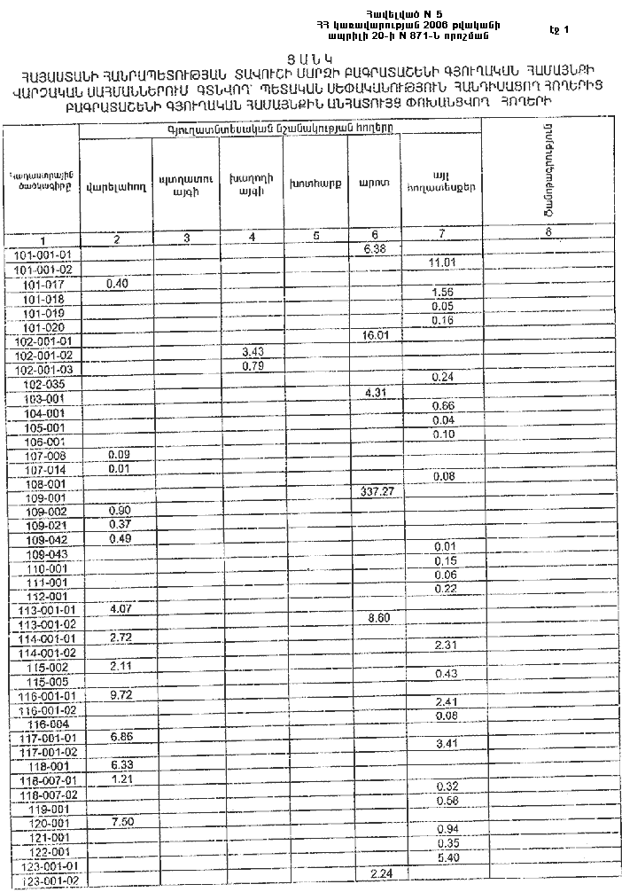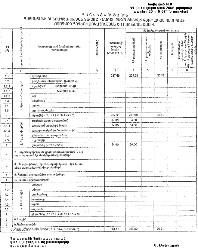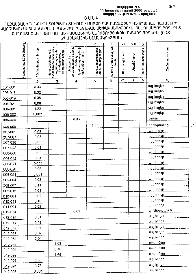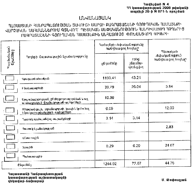 20 ապրիլի 2006 թվականի N 871-Ն