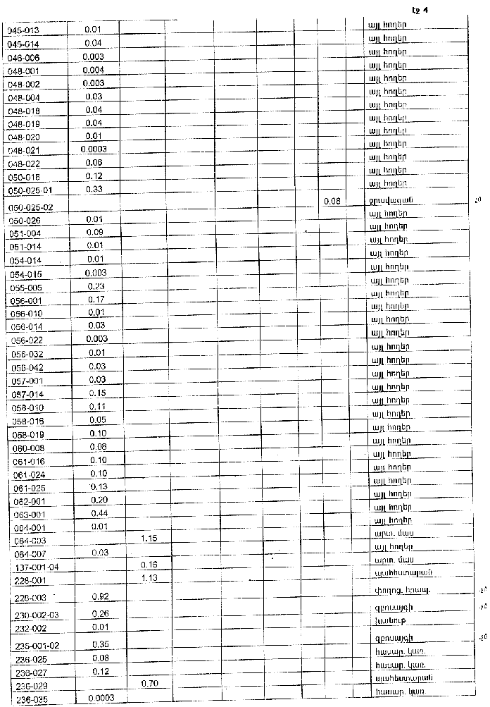 4. Ընդունել ի գիտություն Հայաստանի Հանրապետության Տավուշի մարզի Բագրատաշենի գյուղական համայնքի հողային ֆոնդի առկայության և բաշխման մասին հաշվետվությունը՝ 2005 թվականի հունվարի 1-ի դրությամբ՝ համաձայն NN 8 և 9 հավելվածների: