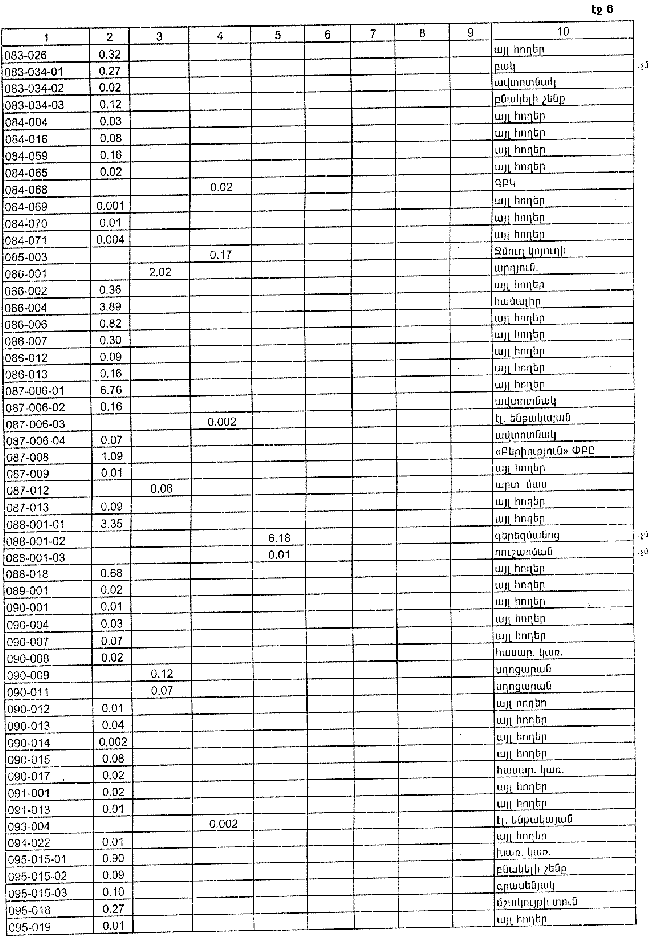 6. Թույլատրել Հայաստանի Հանրապետության կառավարությանն առընթեր անշարժ գույքի կադաստրի պետական կոմիտեի նախագահին Հայաստանի Հանրապետության պետական գեոդեզիական ցանցի հավասարակշռման արդյունքների հիման վրա Հայաստանի Հանրապետության վարչատարածքային միավորների սահմանանիշերի կոորդինատների ժողովածուի հրատարակումից հետո հողային ֆոնդի ընթացիկ հաշվառման ժամանակ Հայաստանի Հանրապետության Տավուշի մարզի Բերդի քաղաքային համայնքի հողային հաշվեկշռում սահմանված կարգով կատարել համապատասխան փոփոխություններ: