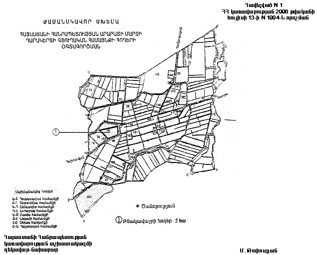 Հայաստանի Հանրապետության կառավարության 2002 թվականի հունիսի 27-ի N 903-Ն որոշմամբ հաստատված` Հայաստանի Հանրապետության Արարատի մարզի Դարակերտի գյուղական համայնքի հողերի օգտագործման ժամանակավոր սխեմայում` համաձայն NN 1 և 2 հավելվածների, համայնքային սեփականություն հանդիսացող գյուղատնտեսական նշանակության 5 հեկտար վարելահողը փոխադրել բնակավայրերի հողերի կատեգորիա` բնակելի կառուցապատման համար: