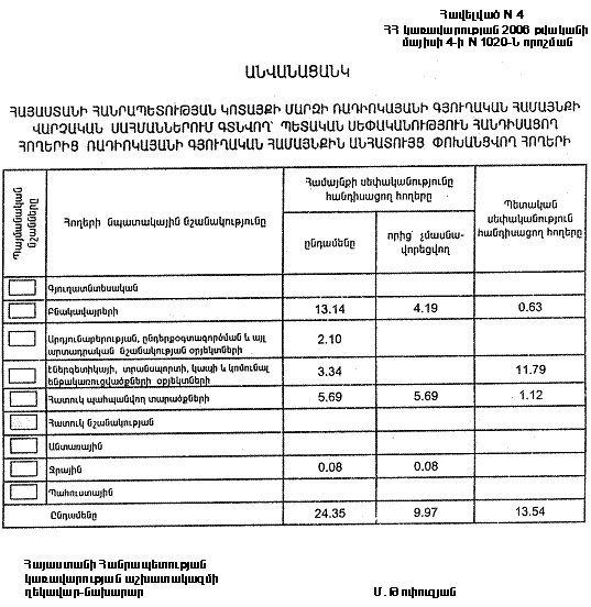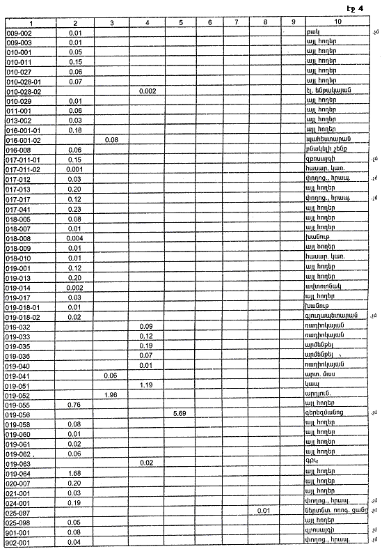 4. Ընդունել ի գիտություն Հայաստանի Հանրապետության Կոտայքի մարզի Ռադիոկայանի գյուղական համայնքի հողային ֆոնդի առկայության և բաշխման մասին հաշվետվությունը` 2005 թվականի հունվարի 1-ի դրությամբ` համաձայն NN 7 և 8 հավելվածների: