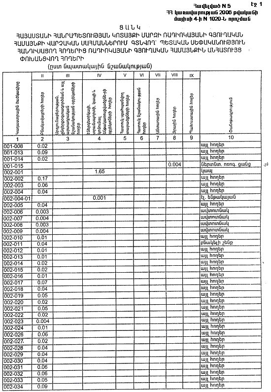 ՀԱՅԱՍՏԱՆԻ ՀԱՆՐԱՊԵՏՈՒԹՅԱՆ ԿՈՏԱՅՔԻ ՄԱՐԶԻ ՌԱԴԻՈԿԱՅԱՆԻ ԳՅՈՒՂԱԿԱՆ ՀԱՄԱՅՆՔԻ ՎԱՐՉԱԿԱՆ ՍԱՀՄԱՆՆԵՐՈՒՄ ԳՏՆՎՈՂ` ՊԵՏԱԿԱՆ ՍԵՓԱԿԱՆՈՒԹՅՈՒՆ ՀԱՆԴԻՍԱՑՈՂ ՀՈՂԵՐԻՑ ՌԱԴԻՈԿԱՅԱՆԻ ԳՅՈՒՂԱԿԱՆ ՀԱՄԱՅՆՔԻՆ ԱՆՀԱՏՈՒՅՑ ՓՈԽԱՆՑՎՈՂ ՀՈՂԵՐԻ (ըստ նպատակային նշանակության)