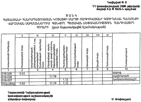 6. Թույլատրել Հայաստանի Հանրապետության կառավարությանն առընթեր անշարժ գույքի կադաստրի պետական կոմիտեի նախագահին Հայաստանի Հանրապետության պետական գեոդեզիական ցանցի հավասարակշռման արդյունքների հիման վրա Հայաստանի Հանրապետության վարչատարածքային միավորների սահմանանիշերի կոորդինատների ժողովածուի հրատարակումից հետո հողային ֆոնդի ընթացիկ հաշվառման ժամանակ Հայաստանի Հանրապետության Կոտայքի մարզի Ռադիոկայանի գյուղական համայնքի հողային հաշվեկշռում սահմանված կարգով կատարել համապատասխան փոփոխություններ: