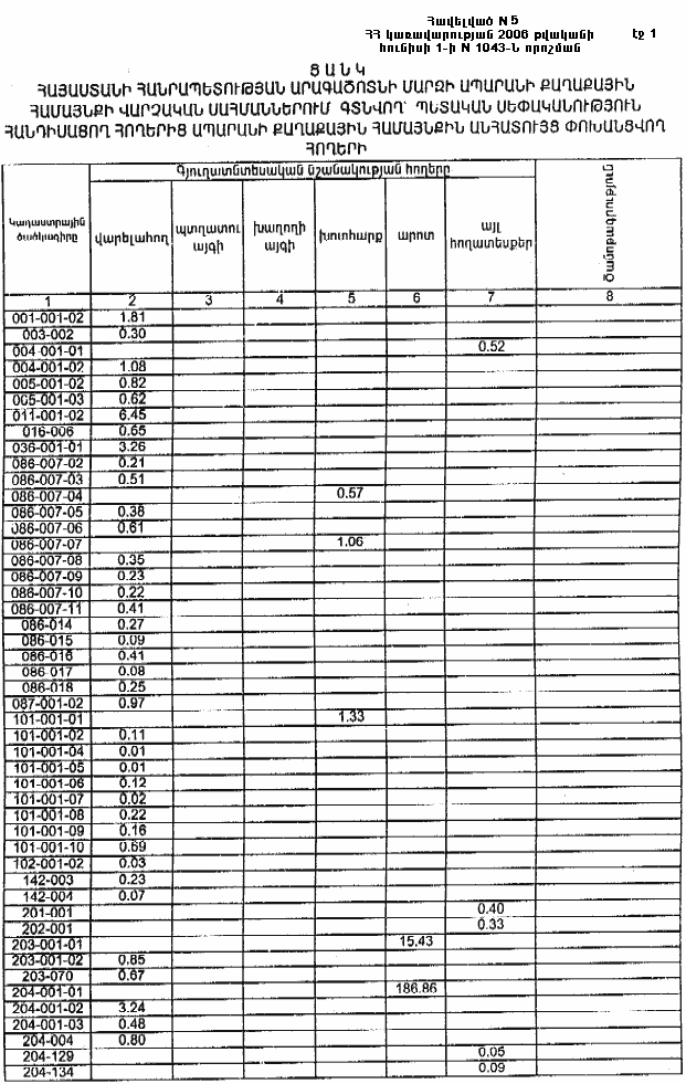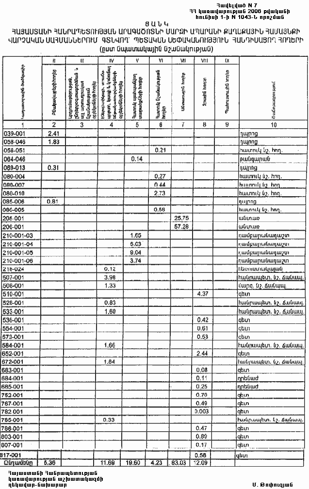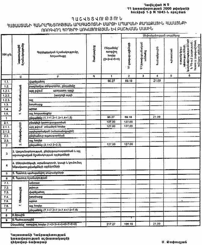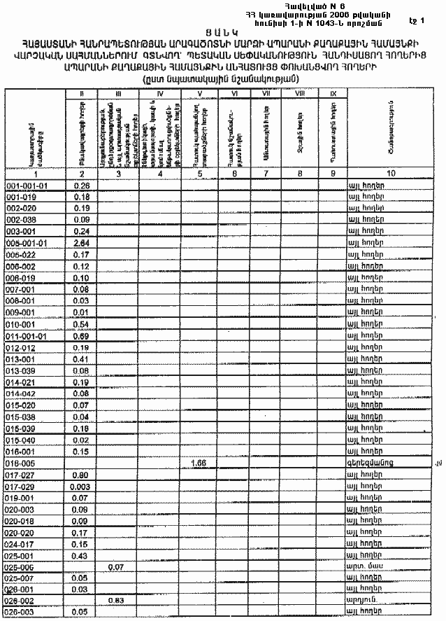 1 հունիսի 2006 թվականի N 1043-Ն