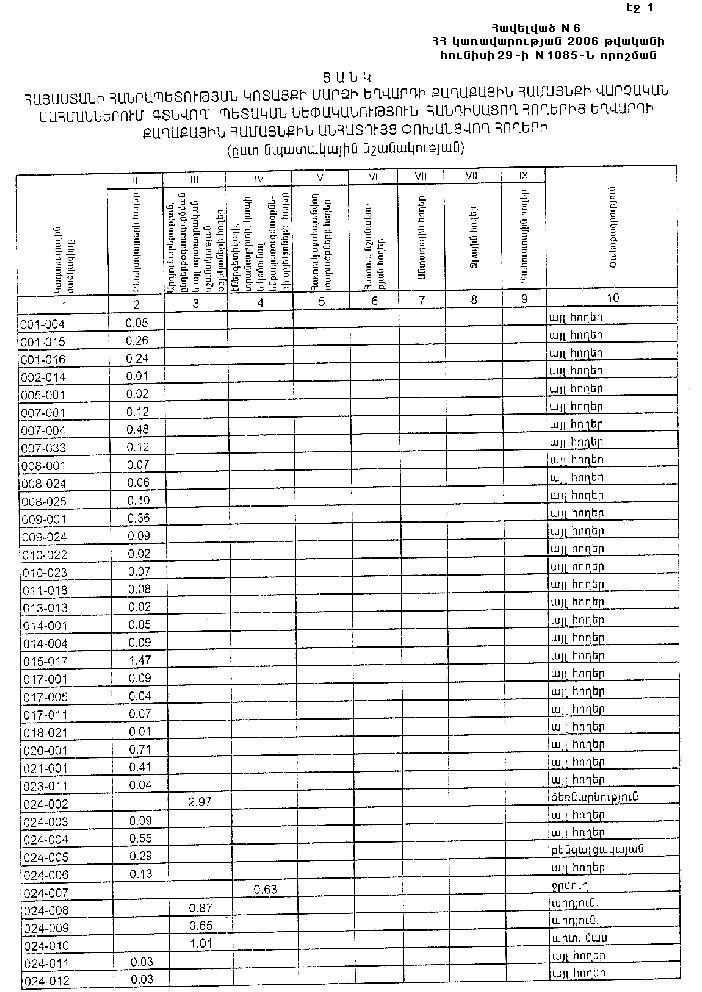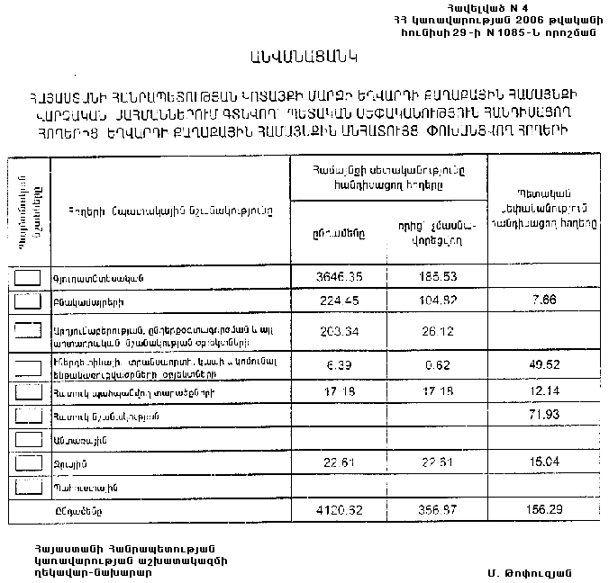 29 հունիսի 2006 թվականի N 1085-Ն