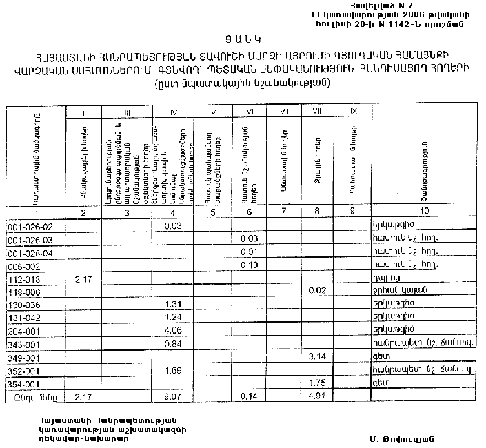 20 հուլիսի 2006 թվականի N 1142-Ն