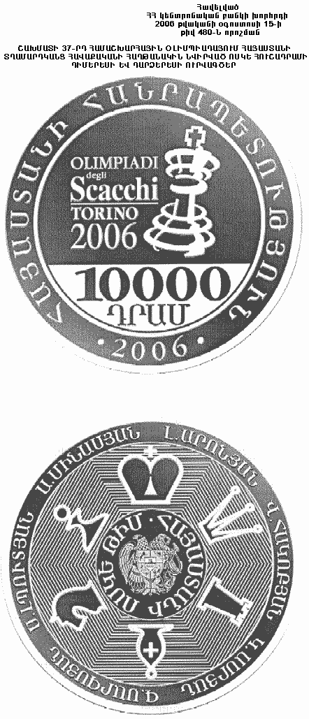 2006-2007 ԹՎԱԿԱՆՆԵՐԻ ՀՈՒՇԱԴՐԱՄՆԵՐԻ ԹՈՂԱՐԿՄԱՆ ԾՐԱԳՐՈՎ ՆԱԽԱՏԵՍՎԱԾ՝ ՇԱԽՄԱՏԻ 37-ՐԴ ՀԱՄԱՇԽԱՐՀԱՅԻՆ ՕԼԻՄՊԻԱԴԱՅՈՒՄ ՀԱՅԱՍՏԱՆԻ ՏՂԱՄԱՐԴԿԱՆՑ ՀԱՎԱՔԱԿԱՆԻ ՀԱՂԹԱՆԱԿԻՆ ՆՎԻՐՎԱԾ ՈՍԿԵ ՀՈՒՇԱԴՐԱՄԻ ՈՒՐՎԱԳԾԵՐԸ ՀԱՍՏԱՏԵԼՈՒ ՄԱՍԻՆ