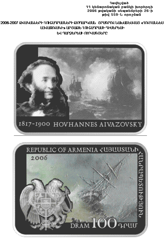 2006-2007 ԹՎԱԿԱՆՆԵՐԻ ՀՈՒՇԱԴՐԱՄՆԵՐԻ ԹՈՂԱՐԿՄԱՆ ԾՐԱԳՐՈՎ ՆԱԽԱՏԵՍՎԱԾ «ՀՈՎՀԱՆՆԵՍ ԱՅՎԱԶՈՎՍԿԻ» ԱՐԾԱԹԵ ՀՈՒՇԱԴՐԱՄԻ ԴԻՄԵՐԵՍԻ ԵՎ ԴԱՐՁԵՐԵՍԻ ՈՒՐՎԱԳԾԵՐԸ