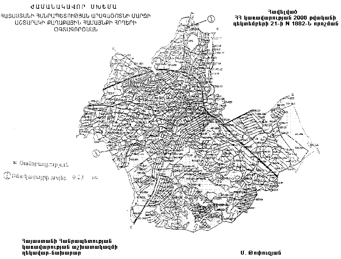 Հայաստանի Հանրապետության կառավարության 2005 թվականի մայիսի 5-ի N 564-Ն որոշմամբ հաստատված` Հայաստանի Հանրապետության Արագածոտնի մարզի Աշտարակի քաղաքային համայնքի հողերի օգտագործման ժամանակավոր սխեմայում` համաձայն հավելվածի, քաղաքացիների սեփականությունը հանդիսացող գյուղատնտեսական նշանակության հողերից 0.23 հեկտար վարելահողը փոխադրել բնակավայրերի հողերի կատեգորիա` հասարակական կառուցապատման համար: