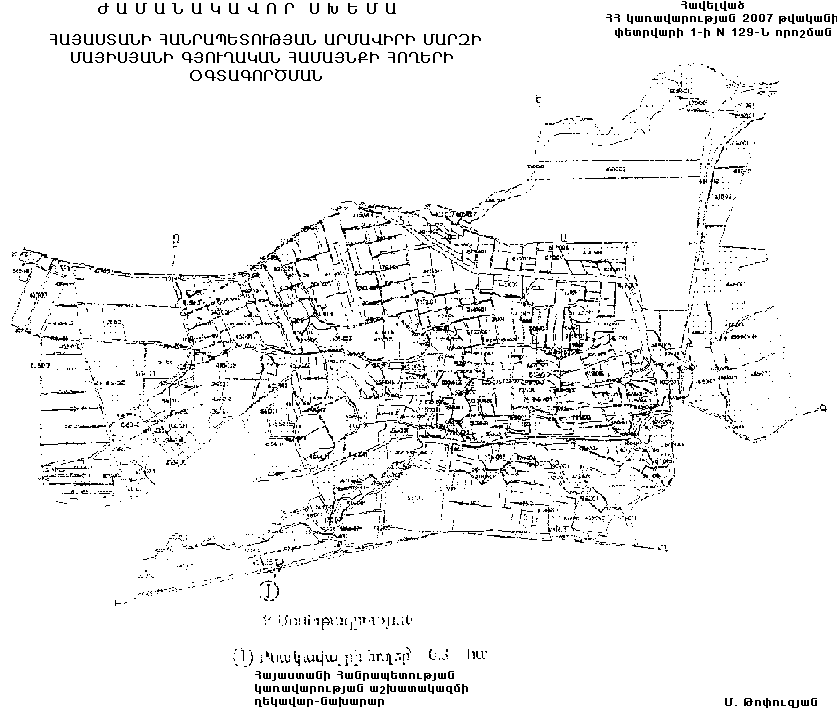 Հայաստանի Հանրապետության կառավարության 2003 թվականի դեկտեմբերի 4-ի N 1625-Ն որոշմամբ հաստատված Հայաստանի Հանրապետության Արմավիրի մարզի Մայիսյանի գյուղական համայնքի հողերի օգտագործման ժամանակավոր սխեմայում` համաձայն հավելվածի, քաղաքացիների սեփականությունը հանդիսացող` գյուղատնտեսական նշանակության հողերից 0.3 հեկտար վարելահողը փոխադրել բնակավայրերի հողերի կատեգորիա` հասարակական կառուցապատման համար: