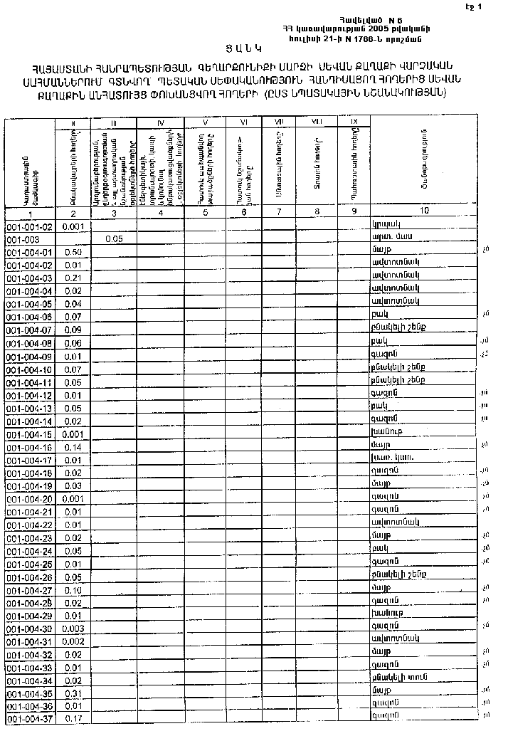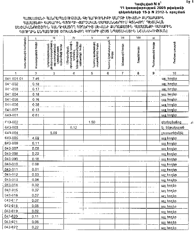 (Հավելվածը խմբ. 15.12.05 N 2312-Ն)